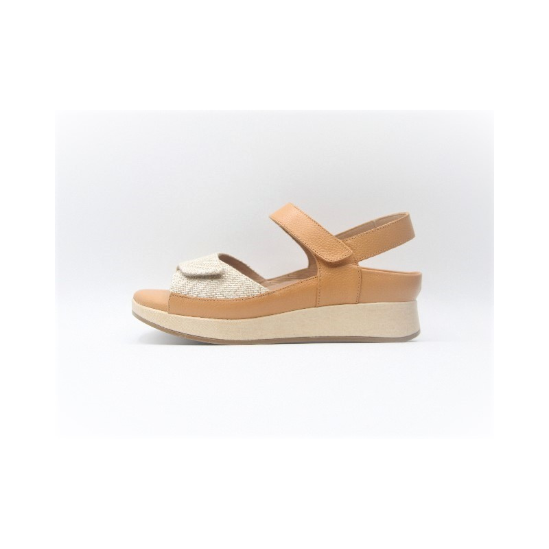 Sandalia de piel grabada de color naranja con velcros delanteros ajustables, cerrado trasero, ideal para anchos especiales, plantillas extraíbles y cuña de 2 cm. En caso de no encontrar tu número ponte en contacto con nosotros.