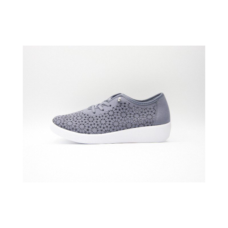 Cordón de nubuck de color tejano con cordones delanteros elásticos ajustables, refuerzo trasero, especial para plantillas extraíbles y cuña de 3 cm. En caso de no encontrar tu número ponte en contacto con nosotros.