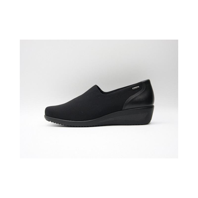 Abotinado de goretex de color negro con refuerzo trasero y cuña de 3 cm. En caso de no encontrar tu número disponible ponte en contacto con nosotros.