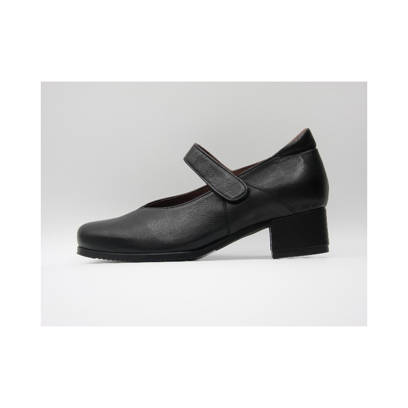 Mercedes de piel grabada de color negro con velcro delantero ajustable, refuerzo trasero, ideal para anchos especiales, plantillas extraíbles y tacón de 3 cm. En caso de no encontrar tu número ponte en contacto con nosotros.