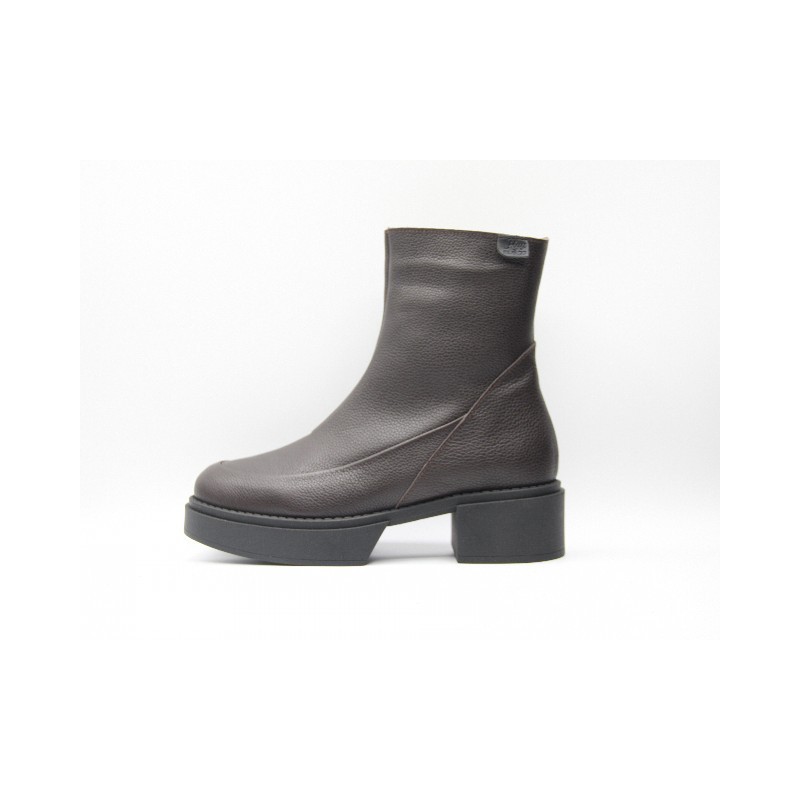 Botín de piel lisa de color marrón con cremallera ajustable, refuerzo delantero y trasero, ideal para anchos especiales, plantillas extraíbles y tacón de 3 cm. En caso de no encontrar tu número disponible ponte en contacto con nosotros.