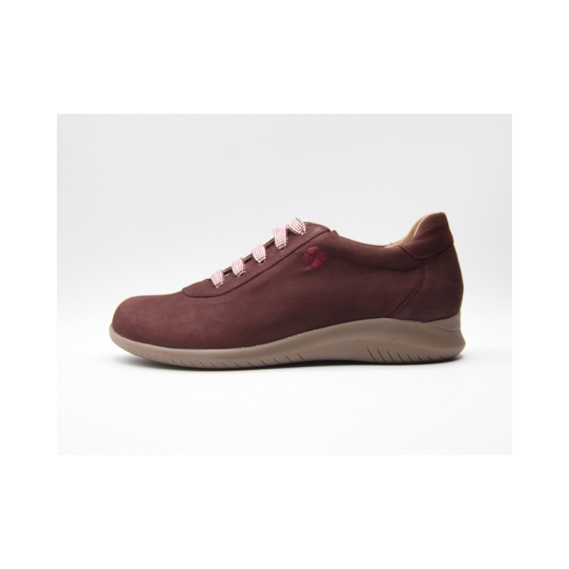 Cordón de nubuck de color burdeos con cordones ajustables, refuerzo trasero, ideal para anchos especiales, plantillas extraíbles y cuña de 2 cm. En caso de no encontrar tu número ponte en contacto con nosotros.Recipiente :
