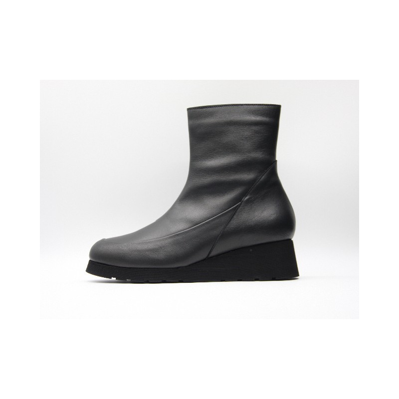 Botín de color negro con cordones y cremallera ajustables, refuerzo delantero y trasero, especial para plantillas extraíbles y cuña de 3 cm. En caso de no encontrar tu número disponible ponte en contacto con nosotros.Recipiente :