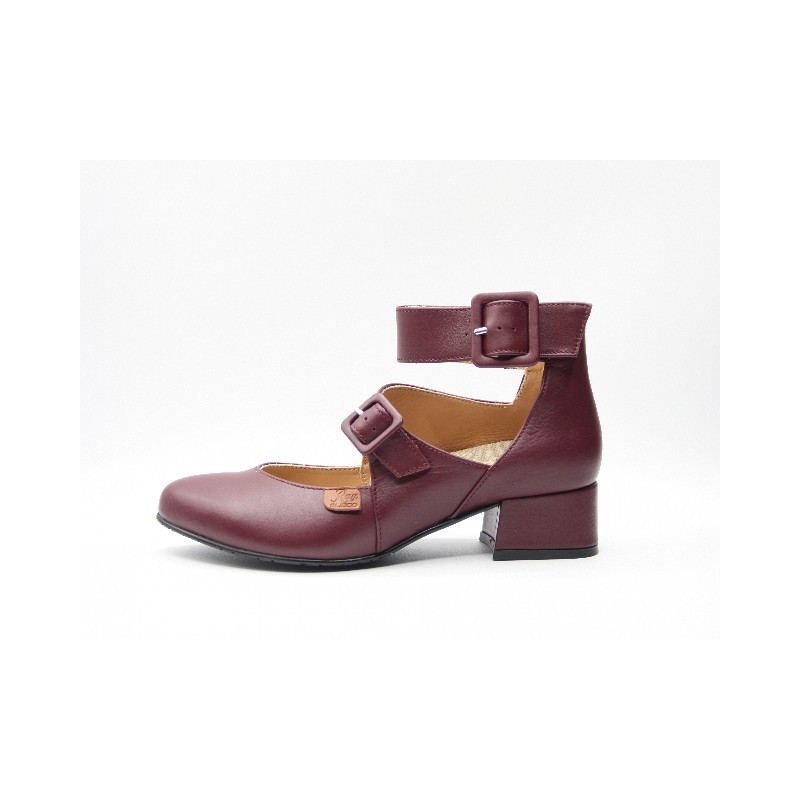 Mercedes de piel de color burdeos con hebillas delanteras ajustables, refuerzo trasero, especial para plantillas extraíbles y tacón de 3 cm. En caso de no encontrar tu número ponte en contacto con nosotros.Recipiente :