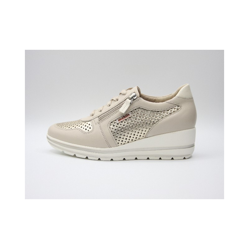 Cordón de piel grabada de color oro con cordones y cremallera ajustable, refuerzo delantero y trasero, ideal para anchos especiales, plantillas extraíbles y cuña de 4 cm. En caso de no encontrar tu número ponte en contacto con nosotros.Recipiente :