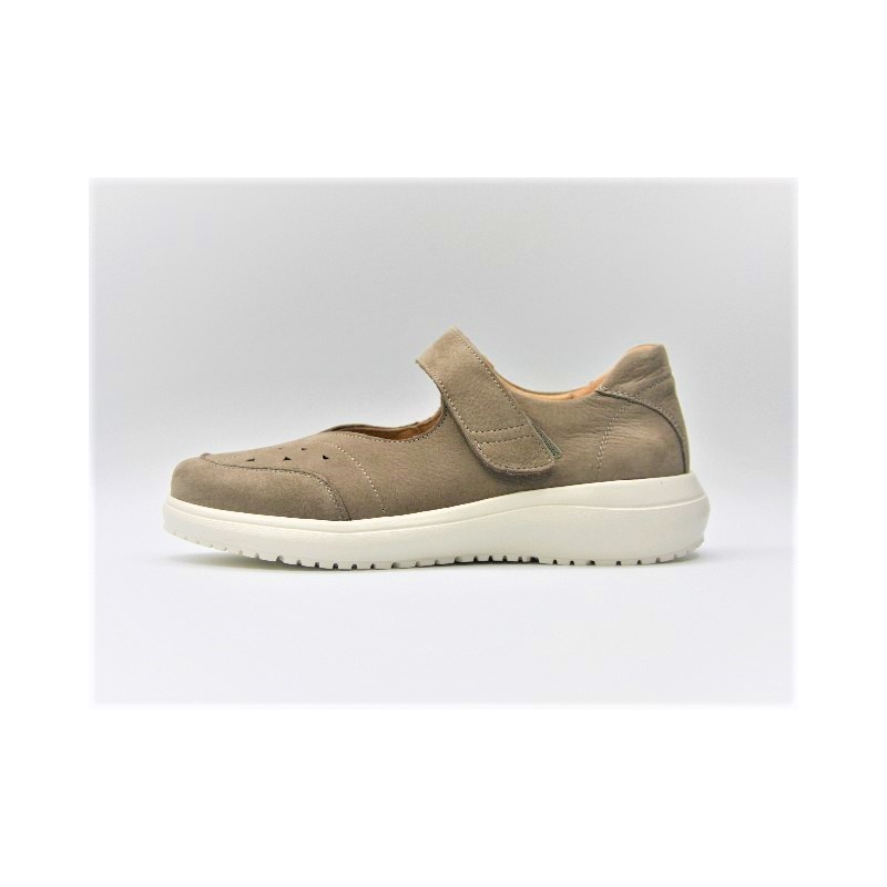 Mercedes de nobuck de color taupe con velcro delantero ajustable, refuerzo delantero y trasero, ideal para anchos especiales, plantillas extraíbles y cuña de 2 cm. En caso de no encontrar tu número ponte en contacto con nosotros.Recipiente :